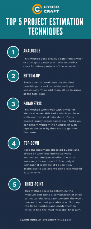 This is probably the most common way people get a project estimation. There are different methodologiestechniques used to estimate a project which are as follows. Its been around since the Manhattan Project in the early 1940s which developed the nuclear bomb by mapping the most important tasks in the project and using that to estimate the project completion date.